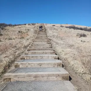 I just saw this on Yelp today while looking for something to do or see and decided to take the walk.While driving in, you go past the Water Purification Plant and continue onto the gravel road. There's a parking lot that's free to use. There are two Honey Buckets aka Port-A-Pottys. Just beyond those is the trailhead with a map with a few trails on it as well as where the Ranger Station is located.Dogs must be leashed at all times! They are specifically not allowed on the incline steps.The loop is approximately 1 mile. I chose to go up the hill on a gravelly dirt path (Rosie Rueter Trail) and descend via the 132 steps (Incline Trail). There are actually 153 steps, unofficially. From the bottom of the steps to the top is a 232 ft elevation. They mostly seemed pretty deep for me. I couldn't imagine walking up them! Children made it up to the top like it wasn't too difficult. I am not a hiker or even a fit person, so this entire outing was a very concerted effort! There is no shaded area anywhere, whether using the staircase or the path on the other side. Wear a hat and bring water. Be on the lookout for snakes per the warning signs posted.Once at the top, there are rocks to sit on to rest. There's a nice information board to look at. You can refer to it while trying to figure out what you're looking at in the distance. Pike's Peak stands out on the board, but I couldn't see it in real life today, Well, I'm sure I saw it out there through the haze. You can also see Denver. On the side where the stairs are, you can see the Rueter-Hess Reservoir.It's always good to be out in nature and soak in the sun and fresh air! I meandered my way around this loop and it took me way too long, but I made it! Not too much of an accomplishment to many people, but it was for me!