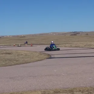Great facility!!! A real asphalt track, with increasing/decreasing radius turns, on/off-camber, esses, and lil elevation too. Timing sheets not part of the deal, so bring a spectator and a stop watch. Real GAS burning karts that are impeccably maintained. Not the crazy fast pro karts, but plenty fast to challenge yourself, get your heart rate up and spin-out if you don't pay attention. Lee is the man! He's likely been racing karts longer than you've been alive, so pay attention when he gives you the briefing! :) Out on prairie, just passed Falcon, about 20 mins from Woodmen & Powers. Two sessions is 25+ minutes of track time for $50!!! The indoor place is $59 for less than 1/2 the time. Like the website sez - MAKE RESERVATION! Lee lives on-site, but there isn't always something going on. He will prep the cars and have them ready for you, but if you try to just drive up, they might be stowed in the garage. This is a track, not a sports bar/arcade.