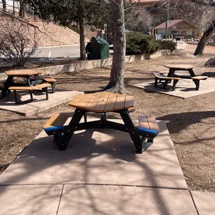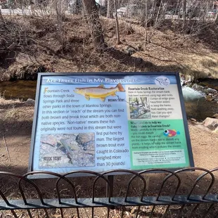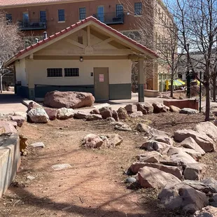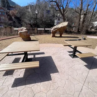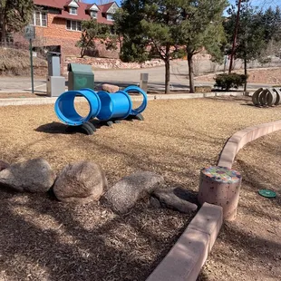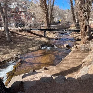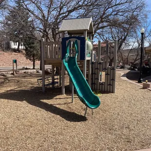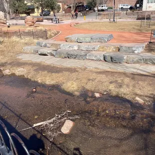 This is a fun park just behind the main street in downtown Manitou. There's metered parking, but that's the whole area there and it can't be avoided. There are some large rocks to climb upon in the back of the park that my kids enjoy the most and a wine tasting place at the opposite end. There are a few play structures and some large disc swings that get a lot of attention. I like to go by the creek and watch the water.