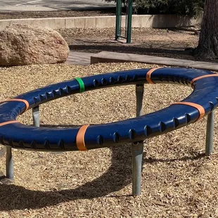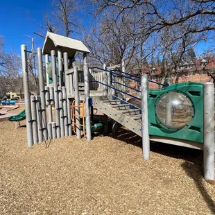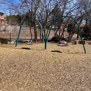 This is a great park and interactive playground. The swings here are awesome and are a circular plate where several kids can fit on together. There are only two though and everyone wants to ride so we had to wait in line! There is a big slide and a couple of other pieces of moving equipment. Our 2 year old loved it!