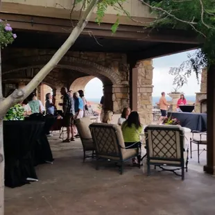 Attended a wedding reception here this past weekend. It was gorgeous! The wedding itself wasn't done here. But I've seen pics of weddings here. It's amazing! There were two separate areas. One was to house the food. The other was to house the attendees. It was a good set up. The backdrop to the bride and grooms table was a gorgeous fireplace. The drinks were set up outside. The reception was done indoor since it started at 6pm. The inviting infinity pool was there to admire. I heard that they offer their own suggestions as far as catering any events you have in mind. The staff for this particular reception were professional but warm and friendly.