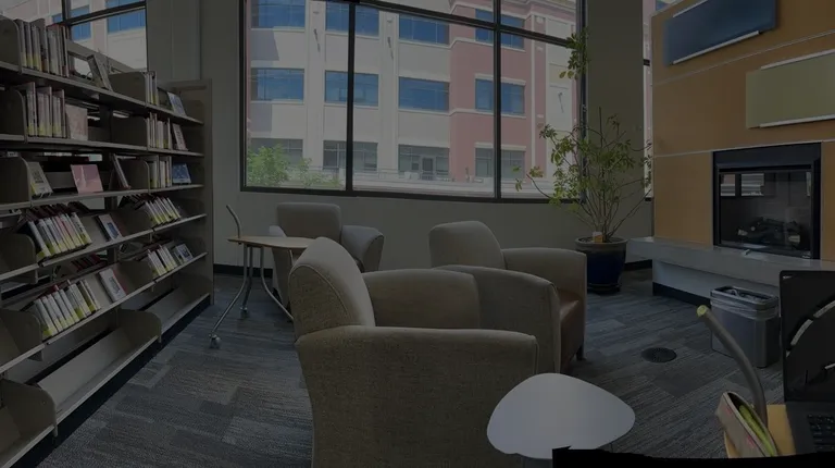 This library is great for studying with its large windows and natural lighting. There are tables, both standard and bar height, as well as large comfy chairs that you can pair with small portable desks on wheels. The flooring has circular floor vents scattered throughout to keep you comfortably cool and the facility from smelling like musty books. Covered parking is available across next to the movie theatre for the hotter days so your car isn't left in the scorching heat. A nice selection of books seems to be available as well.