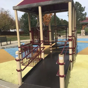 I have a 2 year old. The majority of this playground is too big for him but because of the train theme he loved it anyways. There is a small section made for his size but it is not as creative. There is a nice gazebo and empty grass area but is located near a slightly busy road.