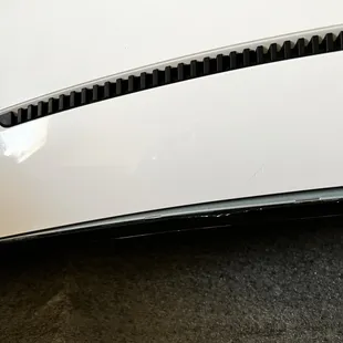 scratch on screen. Large stick glued so right the white sticker is stuck to the screen. The sticker they glued to conceal the scratch.