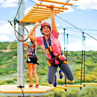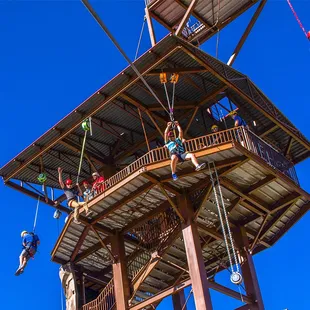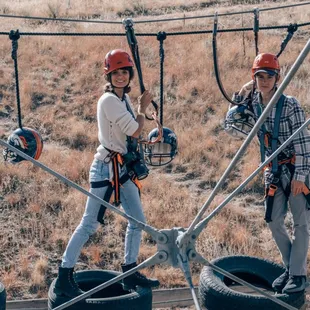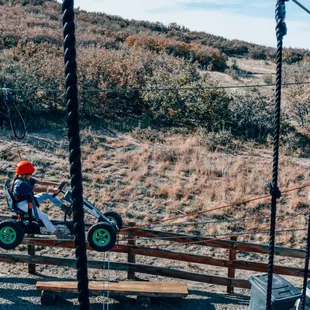 Great ropes course that our teenagers had a blast on for hours during our visit to the area. Multi-level setup with lots of unique fun props including benches, rafts, bikes, etc along with the normal rope course challenges. Friendly helpful staff constantly manned on the ropes helping out those who need it and being encouraging to everyone. They even have a shorter section on the way bottom for the little ones to enjoy without being very high off the ground.It also looks like they have pretty cool ziplines, including long runs across the hills, but the kids weren't up for the included hiking to get to each one.