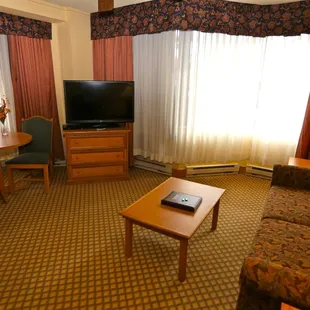 We booked a 2 King Bed Suite. When we showed up they gave us a 1 King room and that room had no hot water. They said that we still had two beds (one is a pullout couch with springs popping up) and they would not refund our money, which was pre paid. They offered a minuscule discount and said that's all we were going to get. The front office manager was terrible and started ignoring us before saying "a tantrum isn't going to get you your money back."Bait and switch tactics. Do not stay here. They ruined a family vacation we worked hard for.