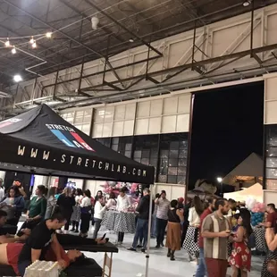Love this space!I got to check out The Hangar at Stanley as part of Yelp's: Oh Hey Summer event and I was def impressed. ++ It's large and can hold a BIG crowd.++ There's large doors leading out to a patio type space.++ There are little bulb lights strung up all aroud that help set a more intimate atmosphere.++ It can really be adapted to any type of event you are trying to accomodate.The only couple drawbacks I saw: -- Parking at the Stanley Marketplace is limited, but there IS parking in the surrounding neighborhood.-- There doesn't appear to be a bathroom located in The Hangar its self. If I ever had the need for a large event space I would totally keep The Hangar at Stanley in mind.