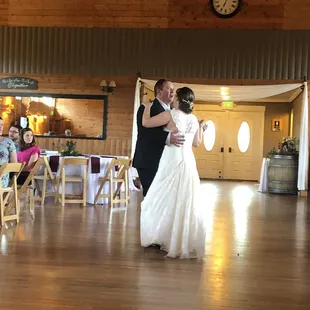 The Pinecrest Event Center. Beautiful hardwood floors ,surrounded with knotty pine walls and high vaulted ceiling.