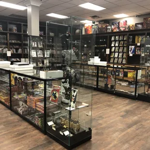 Great looking shop but prices on cards are a little high. Service is good and the staff is knowledgeable and not pushy. Comic selection is outstanding!