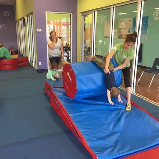 This place is great for babies, but my four year old was unimpressed with her age group's class. They did a lot of categorizing and following each other around, and the actual gymnastics part of the class was following each other over obstacles, not learning actual gymnastics. But my biggest complain is that when you cancel, they make you pay for another 30 days.