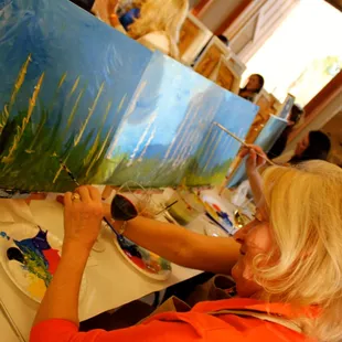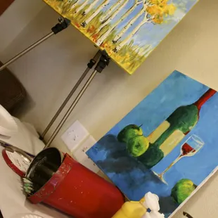 We used the Traveling Easel for a Corporate event. Everyone who went thoroughly enjoyed themselves. I heard some of the employees say that it was a great way to forget about the stress of work and to use another part of their minds. Liz and Mel were amazing. They were super supportive, helpful and really allowed everyone to feel like an artist. I would highly recommend them if you are looking for a way to let your artistic juices flow. They help with set-up and clean-up and they bring all their own supplies. Very, very, very professional.