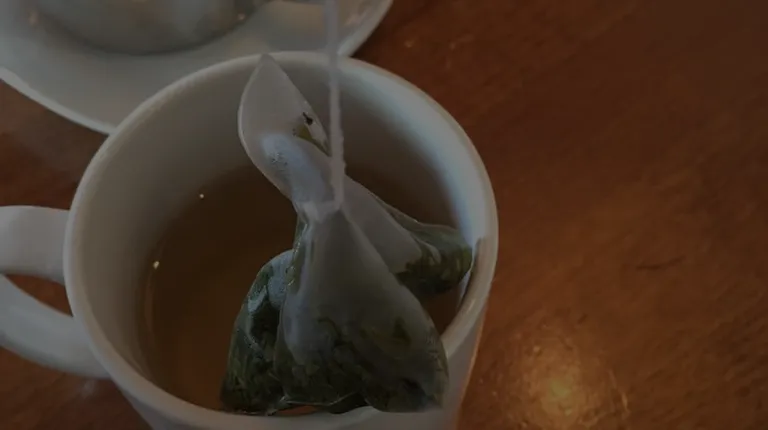 a person holding a tea bag