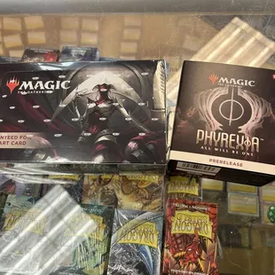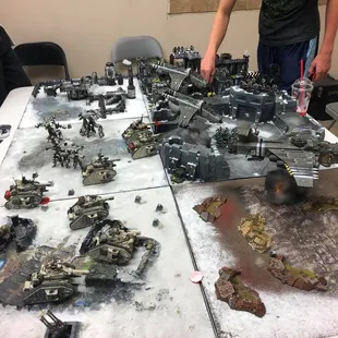 Soooo much stuff. I kind of like it chaotic. It's kind of fun finding stuff. But some of the best prices in the area. 20% off almost everything. Especially if you are a warhammer player or if you like to read graphic novels. Plus Van will order things if you can't find it. And lastly.. he uses TCG player to price his CCGs. If he does have a price tag on one that's too high..it's probably an old tcg price and he will drop to current pricing. Go check his stuff out!