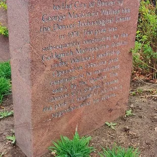 George M Wallace was one of the founding fathers in the development of the Denver Technology Center and he developed this park because he believed that technology and nature could live together. This is a beautiful large park that proves that he was right. This park that sits in the heart of the DTC has walking/biking trails, picnic tables, playground for the kids, water features and other geometric art pieces that seem to blend seamlessly in with the surroundings. A lovely oasis in a bustling community.