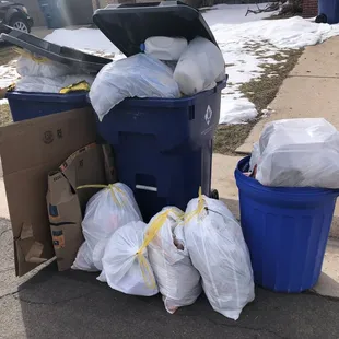 This company failed to pick up our trash after the Marth 14th snowstorm. It's been out since last Thursday and Friday. Now they're telling us to wait until this Friday. We have 255 units. Now we look like a third-world slum with overflowing trash cans, sacks of rotting food, dirty diapers, boxes and blown trash everywhere. This is a sanitation/public health crisis, not to mention all the vermin that are being attracted. Don't do business with them.