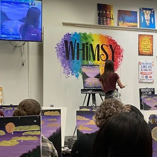 My daughter and I had the best time at Whimsy Studios!! It was my first time painting and I was somewhat apprehensive, however, our instructor (believe her name was Sam) made it so much fun and was so encouraging. The space is well organized, drinks/snacks plentiful, music was great - it was an overall fun and great night out. I highly recommend this place!!!
