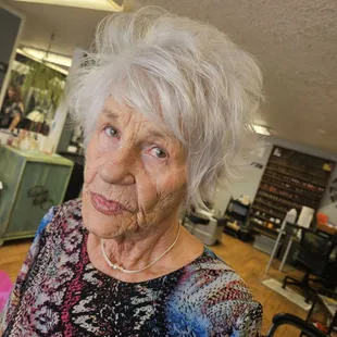 Julie is wonderful. My dull, lifeless mass of straw hadn't been touched by a pro in two years, and somehow, she managed to make me look cute (as cute as possible for a 60-something woman). She was attentive to my needs, extra careful w/ COVID mindfulness, had a clean and lovely space, and a cutie-pie dog who was SO sweet and obedient. She was also fun to talk to ~ easy-going and non-judgmental ~ a great joie de vivre ~ really put me at ease. I will definitely return to her for future touch-ups!