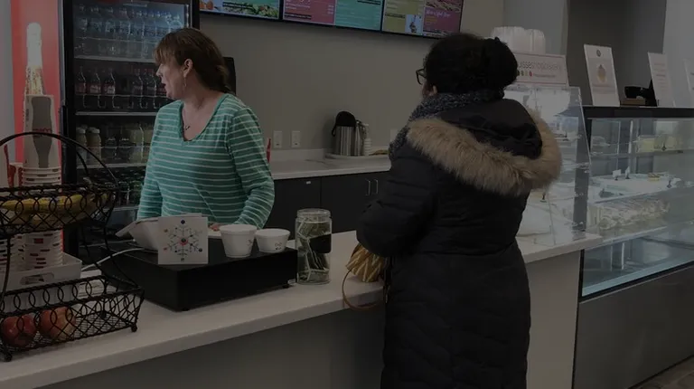 I came for lunch with a friend around 1 o'clock on a Friday and there was one person ahead of us in line.This cafe is fairly new and used to be located on the other side of the lobby of the US Bank building, but was called Cafe Lola previously.It's modern with gray tile and lots of neutral furniture. There's a TV in there as well, which was showing Anthony Bourdain.They've got personal pizzas, quesadillas, paninis, sandwiches, salads, breakfast, and baked goods.I ordered me a turkey Reuben. In my opinion, corned beef reubens are much better but I decided to try it out. My friend got the Philly chicken. It was also a panini. But with lettuce and tomato. A "healthier" version of the Philly cheesesteak.One guy who usually helps out with food was out that day, according to the lady at the register. I was not surprised. They were really backed up making salads and sandwiches. We waited a lot longer that I would've expected. In fact,even though there was no line to order at the register, there was a line of people waiting for their food when we arrived to eat lunch.They call your name when it's ready. They'll box it for you if you want. I didn't need the box since I was dining in.The sandwich was warm. Bread was good but the sandwich was not great. The turkey was...something I could've purchased from a not too great deli. Didn't love the thousand island dressing on there either.My friend also didn't love her meal. It was just okay.Still, I think they've got a good variety of stuff and the price is reasonable for lunch downtown.