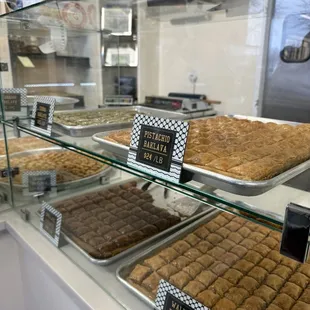 My brother and I stopped by just before closing! I've been wanting to try this place for a while and am kicking myself for not going sooner. The store is small but it has a great selection. Slices of cake, chocolates, baklavas, etc. I'm normally not big on baklava but wanted to try some. The man behind the counter suggested getting a variety, and packed us a half pound box of various flavors. I'm a baklava convert! I can't wait to go back to try more of what they have.
