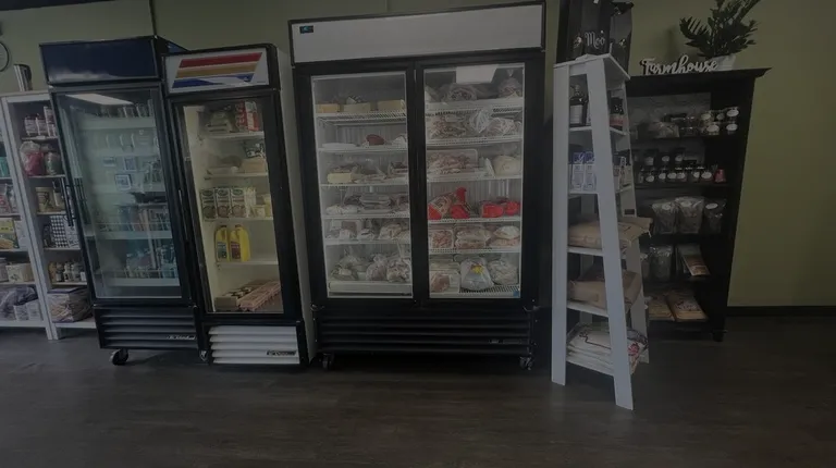 Menu and half of the cooler. Very clean, nice place!