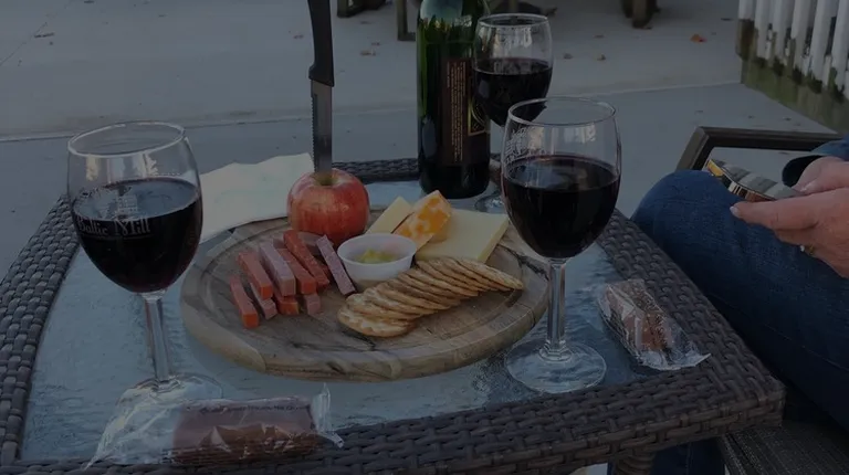Wine is delicious!! I want to like wine, but it isn't always my fave - I'm a bourbon girl - but this wine was SO good Meat and cheese plate was good too!!Husband loved the strawberry blonde I loved the just peachy and the blackberry