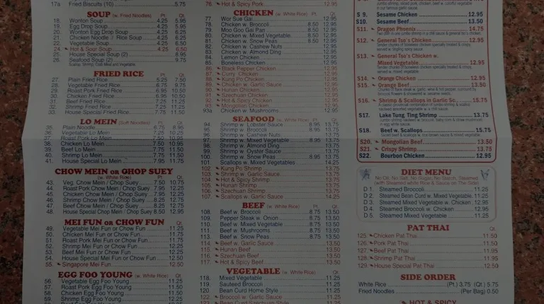 Been eating here for years.family ran.consistency of food is always spot on.large menu selection.unique flavors in alot of there dishes.crab Rangoons are delicious with a lot of filling.The pot stickers are probably the best I have ever had.large portions for lunch or dinner.