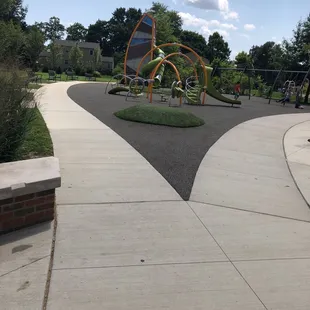 My 5 and 7 year old love it here. Cool climbing structure, swings and small fountain area. A small pavilion, padded play area, parking lot right next to it, near the library and bike trail, bathrooms, and lots of benches. It is usually busy but not crowded!