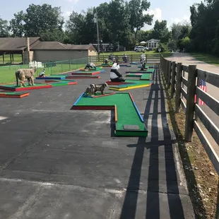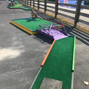 Mini-golf area, while looking good it becoming un-playable because of ground settling - Cups are above putting surface. balls won't drop.