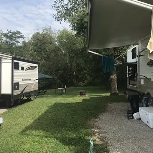 This is our second time staying here - great location! Sites are a little tight, no shade in portion designated for weekends or short-term. Wonderful pond, well-stocked with Blue Gill & Bass! Nice, clean facilities.