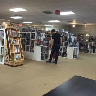 Great selection of games and an incredible open floor plan- absolutely wonderful for testing out games, running game nights, and even some private rooms- where we heard a DM absolutely killing it with his group. The staff was very friendly and helpful, even with us being out of town, he assured us that we could always hop in a game if we ever visited again. Good selection of RPG materials as well. We'll take his advice and definitely come back when we're in the area again!