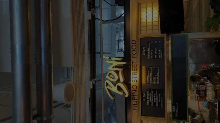 Came to visit Budd Dairy Food Hall and was instantly drawn to Boni, after viewing all my options. I got the grilled pork belly rice bowl in market style which came with garlic rice, roasted corn, slaw and garlic vinaigrette. Added 2 pork lumpias to make the entire meal a 5/5! The pork belly was packed with flavour and perfectly grilled/ cooked. The roasted corn was sweet and mixed with tomatoes and parsley. The slaw added a great crunch to the meal. Lumpias were fried nice and golden brown with a sweet chili dipping sauce on the side. Overall I loved eating this, especially when you get a little bit of each item as one bite - delicious! Also got a drink of zero sugar 7up and was pleasantly surprised at how good it tasted. Love that they offered a zero sugar soda option. Would probably get this again even with the abundance of other food options in this food hall, as the flavours were so jam packed!