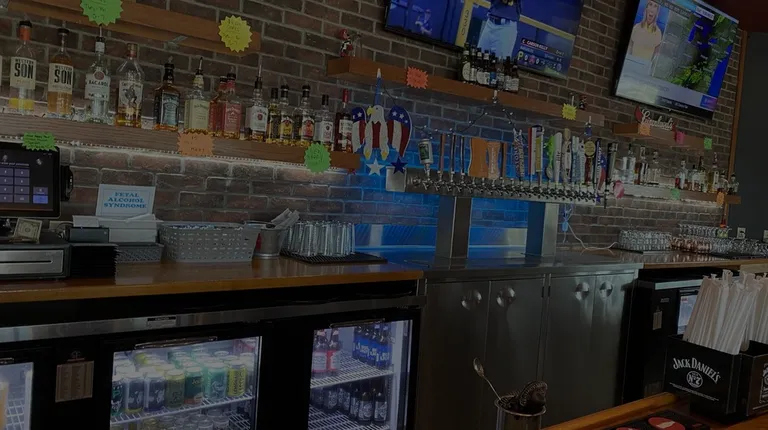 a bar with a menu on the wall