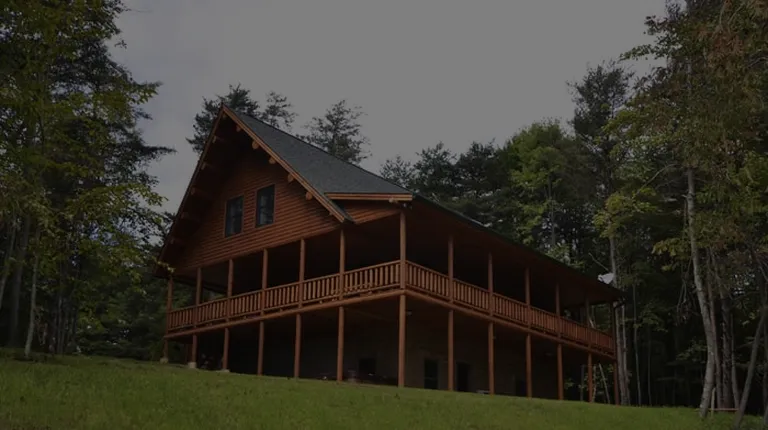 Pond next too large cabin