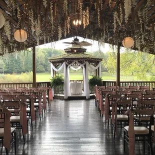 I just attended my grandson's wedding at the Chalet. It was such a lovely time. Everything was beautiful! The wedding took place outside on the patio. There is a beautiful gazebo attached to the hall where the reception was going to be held. It was decorated with little lights and flowers and crystal beads hanging from the ceiling. I'm really not doing a good job describing just how pretty it was. The staff was amazing and the food was hot and delicious. The hall was big enough for all of us. Since my grandson was paying for this himself, he kept the guest at around 50 people. There was plenty of room so that you weren't banging chairs trying to get up from the table. There was plenty of room for dancing. Everyone had a great time. Everything was wonderful. I would highly recommend this venue for any kind of celebration. The Chalet sits on a little lake, and that just made for some lovely pictures. I can't say enough good things about this place. You have to see it for yourself. You won't be disappointed.
