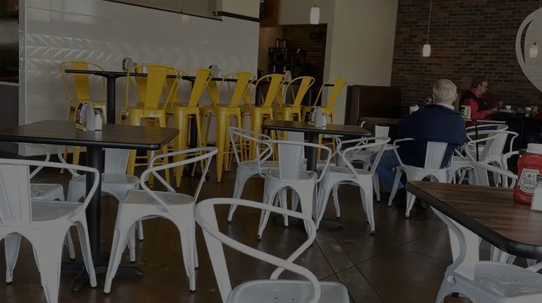 a restaurant with yellow chairs