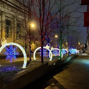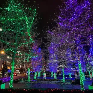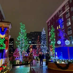 We came here on a Fri night and took some pictures/videos. This was when it was dead and not many people around. I wished they had food open to help draw in more people. We came back on Saturday night and it was packed. It was like the whole city came out. There was free hot chocolate, food, and small shops. Also, they turned on more lights, Santa Claus was there to take pictures with, and the carousel was on.