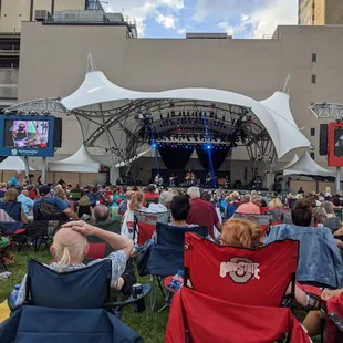 First time visitor to the Commons, Abba cover band with the Columbus Symphony Orchestra. Good sound system but with all the people in front and the stage being almost at ground level almost impossible to see any thing even with what they described as "Big Screens" each side of the stage. Fun evening though but will take a picnic next time and not rely on the vendors.