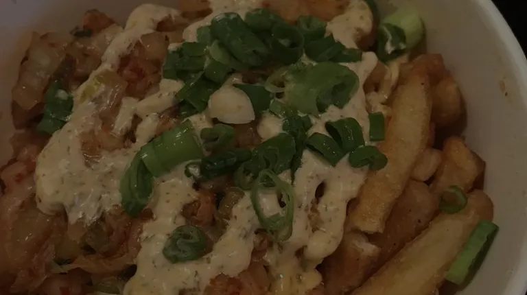 The cartoony look of the logo gave me pause. It is a ghost kitchen, so anything and everything is possible. A bit of research showed them to be quite popular in the Née York area. Free delivery was also helpful in making the purchase decision, the food arrived much earlier than expected. The cartoon logo on the bag. After setting it down I realized it was much higher quality than your typical delivery order. I carefully cut it away to show the packaging job. The kimchi fries had a pleasant tang. The wontons were crisp and wonderful. The chicken was great in quantity but quality wasn't quite there. When chicken is in the name, it should be on point.