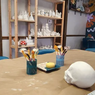 Impressed with the wide selection of items to paint here. Holiday items, figurines, plates, planters, and so much more. The staff was super helpful and there are a couple of rooms that you can sit in which gave it a cozy feel. Some parking is available right beside the building. It is down a small alley behind the buildings on main street.