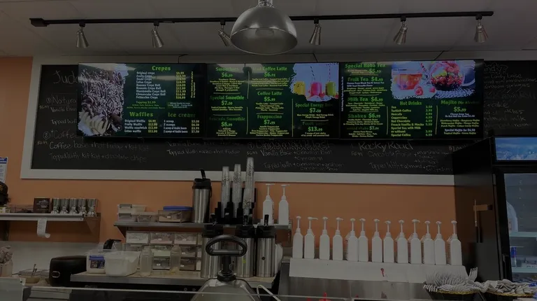 Stopped in to end the evening. Saw this place was fairly new, so we stopped in. It's very well lit inside, they have a digital menu. They offer crepes, teas, coffee's and much more. We were full from dinner, so we did not opt for a crepe. They did have several different kind to choose from all of which were sweet. I chose a fruit green tea. Most of the drinks have the option for green or black tea. I opted for mango flavor with mango pearls. Good flavor, shaken with ice and lastly sealed. A nice stop to end our evening. Next time I'll be back to try a crepe and a coffee!