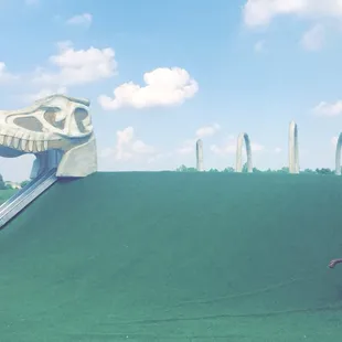So I drove over 55 mins to come to the splash pad behind the ymca center. Let me tell you it was well worth it!!! When we first arrived the kids was really excited and couldn't wait to get out off the car! The water park is big enough for you to run around and play with your kids and everyone else's kids. Theirs plenty of seating areas and theirs a little concession stand. The place is Dinosaur themed and its perfect for kids that love dinosaurs. Theirs Dino prints in the concrete and theres a huge Dino slide, also the park is all turf so no rocks or mulch to worry about. But if its a really hot day the park will sting their little feets and bottoms. I recommend bringing plenty of bottled water to pour on the slide and their feet as they walk around or bring swimming shoes for the kids to run around. Great place to exhaust the little one out!!! The ymca also has a play area inside also but for a family rate of $26 you can swim inside.