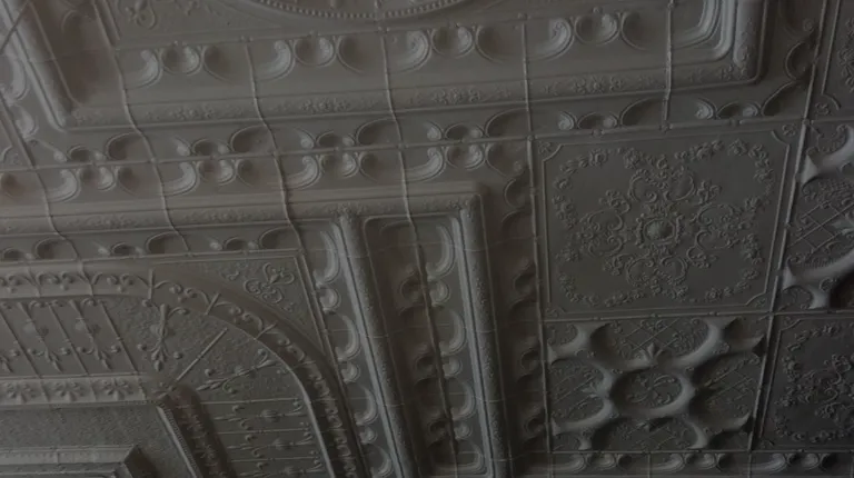 a reflection of a building in the window