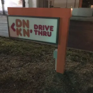 a drive thru sign at night