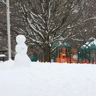 The playground here is really nice. It has a little tunnel to crawl through, a great big tunnel slide, a few other smaller slides, a see saw like balance beam looking thing, those rocking things whatever they're called. It's pretty big and my son loved it. It's one of his favorites. Right near it is an expensive soda machine, real bathrooms, the shuffle board court and a trail that goes through the small patch of woods on the edge of the park. The best part of this park is the dog park. Dogs are allowed off leash at dusk when there's barely any daylight left so if you're quick, you can squeeze in a little bit of play time for your dog before it gets completely dark. Whooptee do, they gave you a few minutes in the park after everybody's left. BUT, it's good for a little while anyway, and when you're at the park, there's lots of passing dogs to pet. There are a LOT of dogs here. There's also a couple ball fields including a baseball diamond. That's kind of rare. Park designers seem to think everybody plays soccer because that's the only field I ever see at parks.