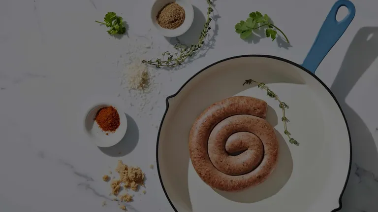 BRATWURST: A classic bratwurst mixed with mustard powder, white pepper, mace and our own signature blend of spices.