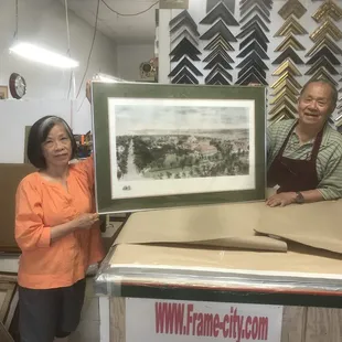 The owners are so kind and do such a wonderful job! I had ordered a frame for a Father's Day gift project for my husband's first Father's Day and that company ended up not delivering it to the store because it was damaged and never called to let me know. I was in a pinch for time, and I am so glad I found this store! The owner has been framing for 62 years I think he said, and he did such a wonderful job last minute for me- he even cut a matte to fit the job I wanted same day. Couldn't be happier, and will definitely use them again for any frame job I need.