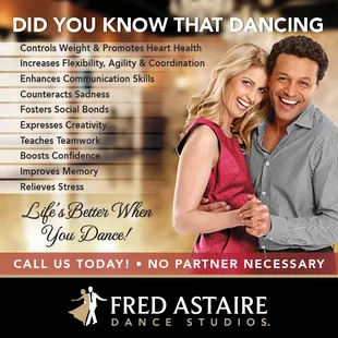 My wife and I have been married 36 years and we'd never danced a single step together. One day our friends invited us to an open house at Fred Astaire Westerville. We had so much fun that we signed up for their introductory lessons. Then we had so much more fun that we began private lessons that included group lessons and weekly parties. It wasn't long at all before the pros there had us dancing the foxtrot, waltz, rumba, tango and so many more wonderful dance steps. A huge thanks to Amy, Mark, Sam, Sarah, Keith and Victoria. We have learned so much from you all and will continue doing so. We look forward to even more fun in the time to come with these new skills we and the many new friends we have made there at FA Westerville. Dance On!