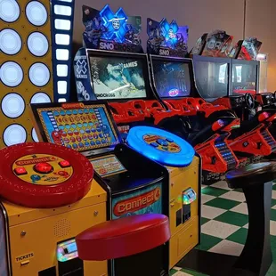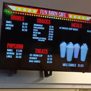 Cool games! Huge arcade area! Awesome air hockey tables and all kinds of games. Very reasonable new release movies for $4.00 per person. A large popcorn is only $3.00, a large soda is $1.50, a hotdog $1.00. A 12 inch pizza with pepperoni is a mere $5.00! Love this place!