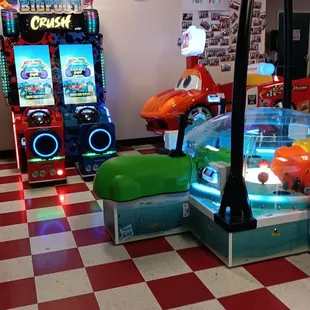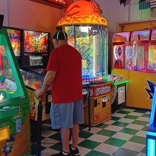 When it's raining in an outdoor tourist area, what else do you do but head to an indoor arcade/movie theater. 3 of 5 stars because more than a few machines were not in working order. However, pizza just $5 at the snack bar which you can take into the theater. Overall, it will work for about an hour of fun. Small bumper car area. Small bowling area. Most games .50 cents to as much as $3.50 per play.