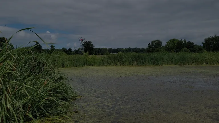 This is a really neat historical farm. It is set in the Depression era, with some of the items on display having signage that indicated pre-WWII dates in the late 1930s/early 1940s. It is a very nice property located directly across the street from Gallant Woods Park, which it shares a connector trail with. It does have its own very large gravel parking lot, as well. There is a cute farmhouse, a white barn, and a machine shed. Inside of the exterior buildings are era-appropriate equipment, such as tractors and a really neat car! There is also signage and space for the sheep and cows, which were all outside enjoying the lovely weather during our recent visit. There is currently a very cute calf too. A variety of outdoor games were available to play, such as badminton, and the farmhouse can be toured, as well. There's a large vegetable garden next to the house that was absolutely blooming. A large pond is set towards the middle of the property, and it has a nice overview deck with benches to sit and enjoy the view. There were a lot of frogs and birds, plus a small turtle, to see on our recent visit. It has a very picturesque view with a little windmill. This is a wonderful place to explore and learn more about another time period!